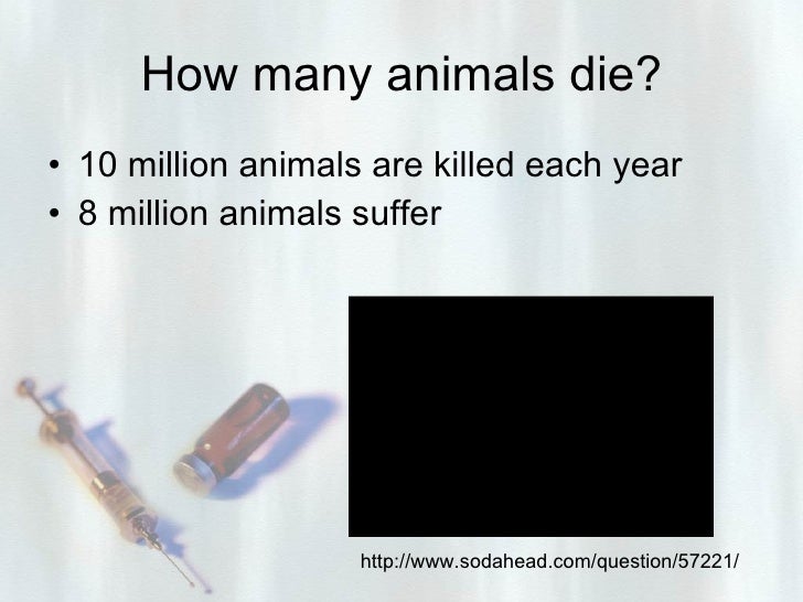 Whether they come from Chinese fur farms Indian slaughterhouses or the Australian outback an immeasurable amount of suffering goes into every fur-trimmed jacket leather belt and wool sweater. How many animals are killed each year by animal testing. In a news report published in the USA Today on February 14 2008 the Humane Society of the United States placed an estimate of about 10 million animals killed each year in the United States from animal testing.