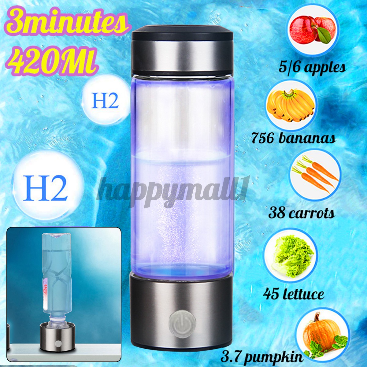 420ml Hydrogens Rich Water Cup Portable Water Filter Bottle 3 Minutes Electrolys Shopee Indonesia