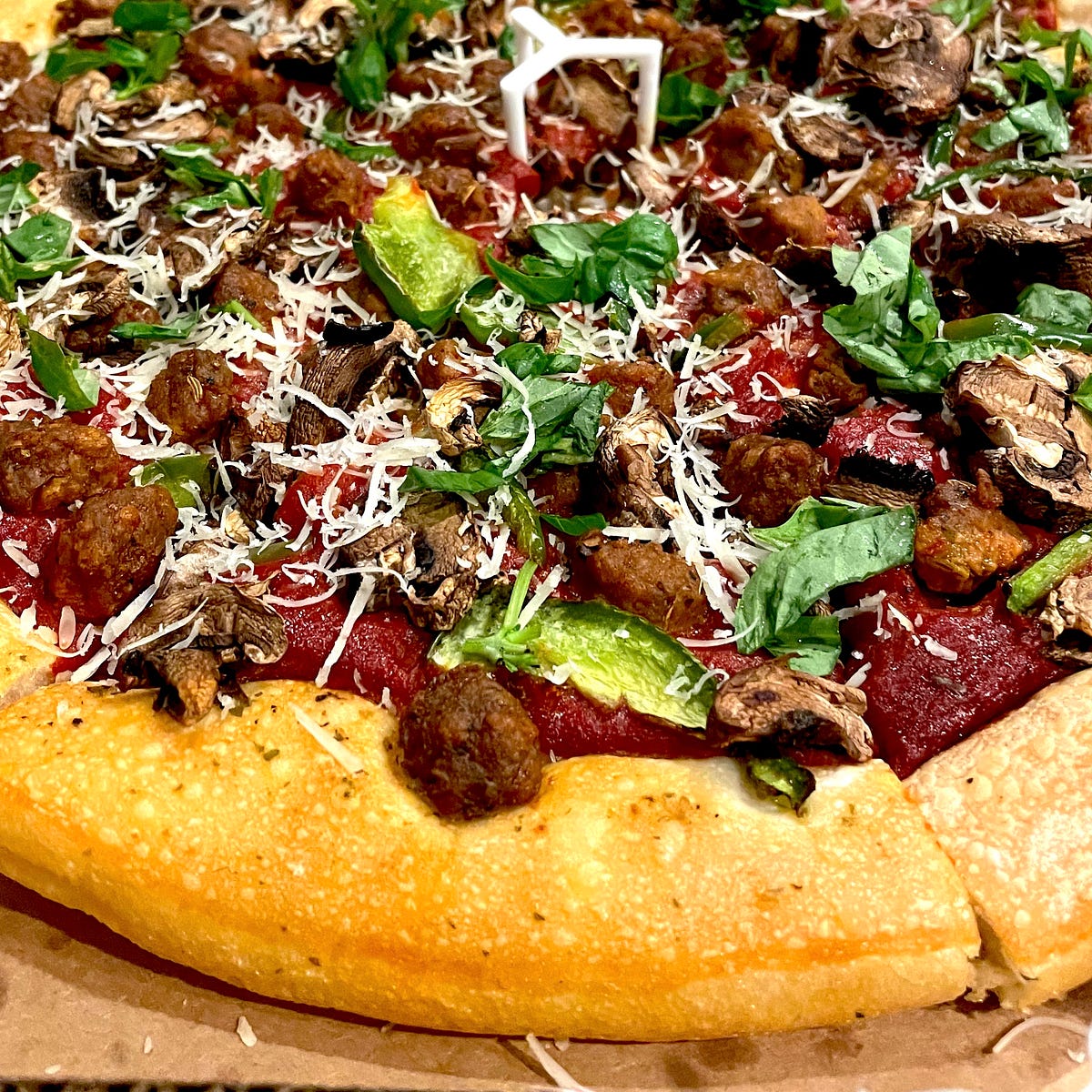 Vegan Pizza by the slice with Daiya cheese 2 giant slices for 5. Daiya counts as double topping Recommended pie. Lil Nonnas now offers pizzas using house-made vegan meat and cheese toppings such as beet-based pepperoni seitan sweet Italian sausage smoky tempeh bacon crumbles dairy-free mozzarella and almond ricotta.