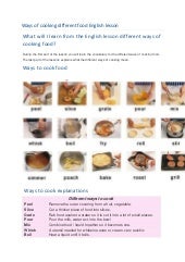 UNEXPECTED COOKING HACKS THAT WILL IMPROVE YOUR DISHES FOR THE BETERYou dont need to a chef to experiment around in your kitchen. Ways of Cooking Vocabulary with Pictures Pronunciations and Definitions - Lesson 12. In this video I show you.